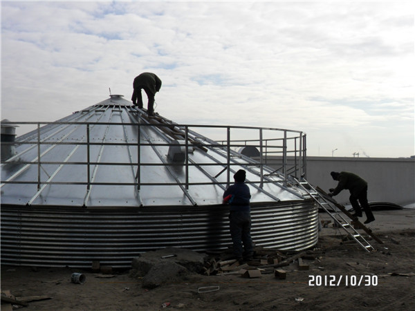 1、通風(fēng)系統(tǒng),倉頂安裝自然通風(fēng)窗、引風(fēng)機(jī),錐底安裝鼓風(fēng)機(jī),引流空氣到倉內(nèi)循環(huán),保護(hù)糧食不受潮,極大的保證了倉內(nèi)糧食的質(zhì)量。
