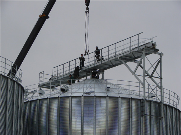 1、通風(fēng)系統(tǒng),倉頂安裝自然通風(fēng)窗、引風(fēng)機,錐底安裝鼓風(fēng)機,引流空氣到倉內(nèi)循環(huán),保護糧食不受潮,極大的保證了倉內(nèi)糧食的質(zhì)量。