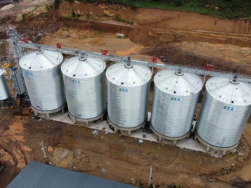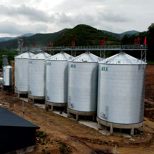 山西雜糧加工廠5臺平底鋼板倉安裝完畢